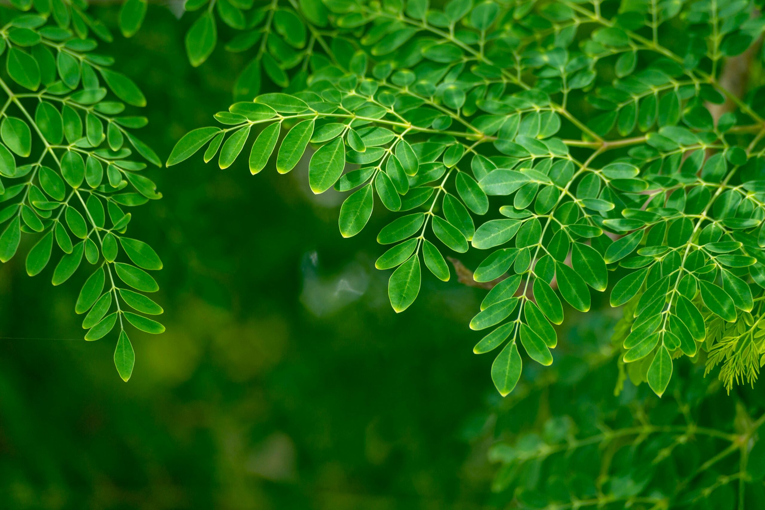 Moringa oil and leaf extracts contain Vitamin E and antioxidants that nourish the skin, delay aging, and strengthen hair.